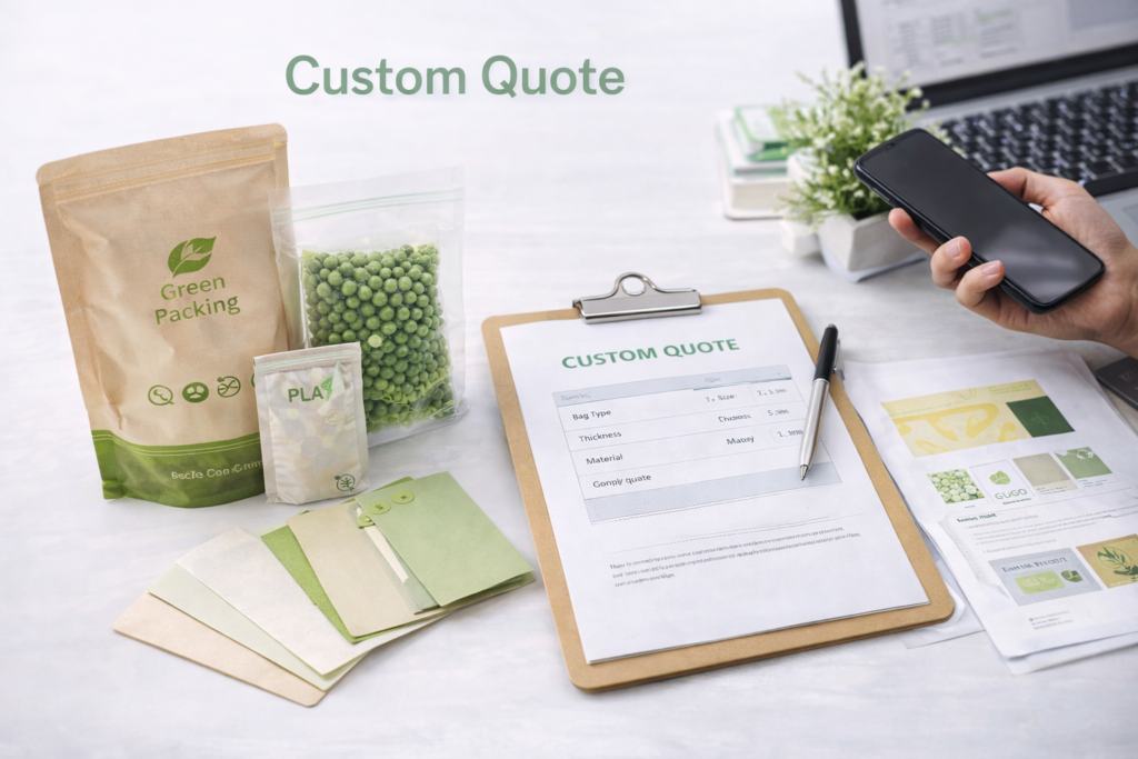 We manufacture custom biodegradable and compostable bags for brands, importers, wholesalers and packaging distributors, with support for custom sizes, printing, material selection, low MOQ sampling and bulk production.